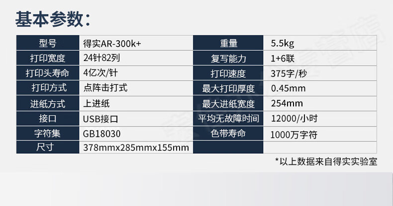 得实针式打印机AR-300K+ 滚筒后进纸式24针82列地磅单据医院窗口发票7联针式 【高配版】AR-300K+ 7联 USB+并口版 官方标配 自营
