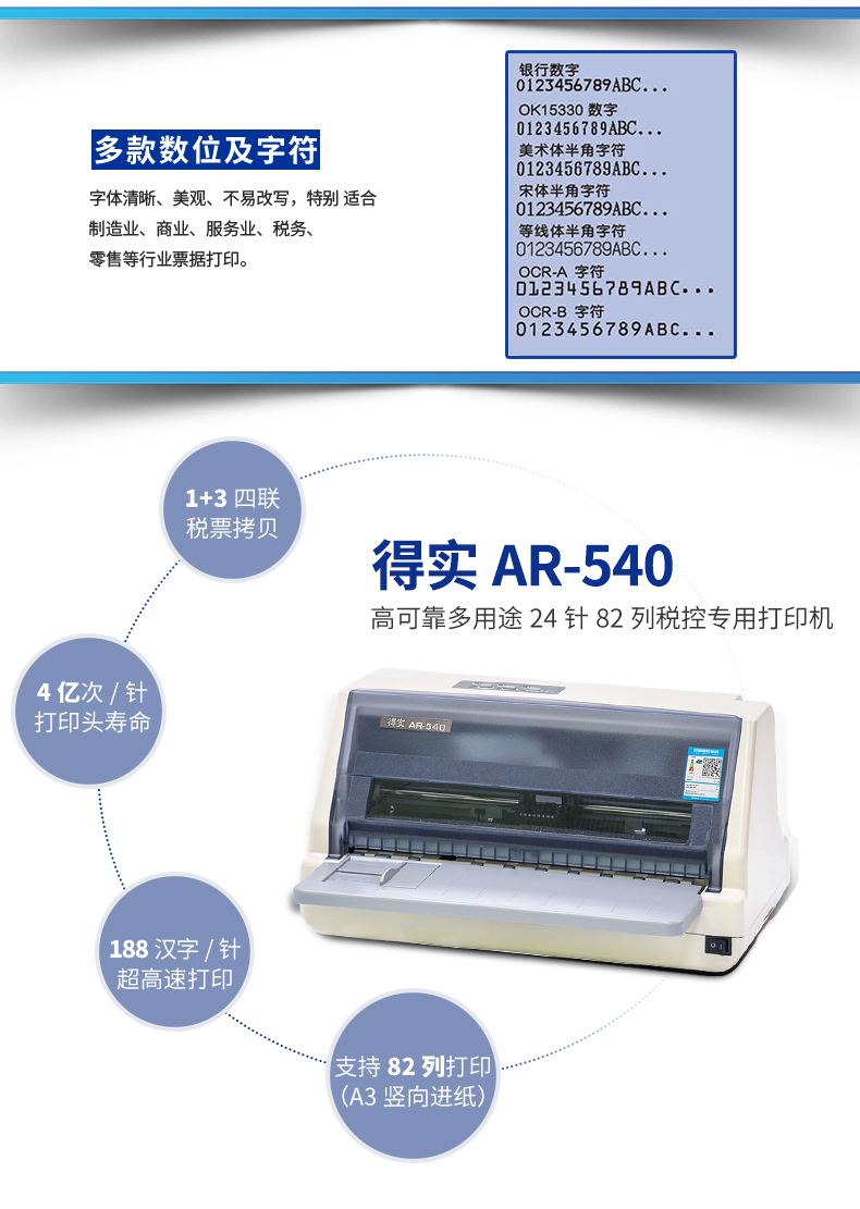 得实(Dascom)AR-540II 高可靠多用途82列平推票据打印机 自营