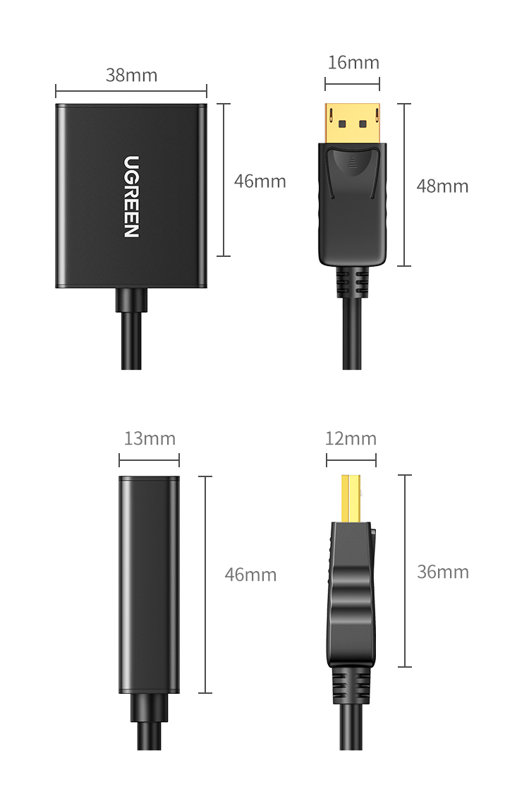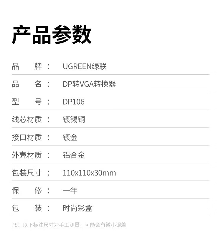 绿联(UGREEN)DP转VGA母头 黑色 20414 自营