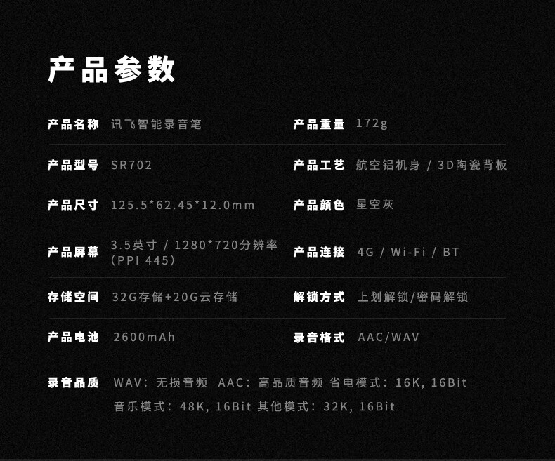 科大讯飞32G AI智能录音笔SR702 自营