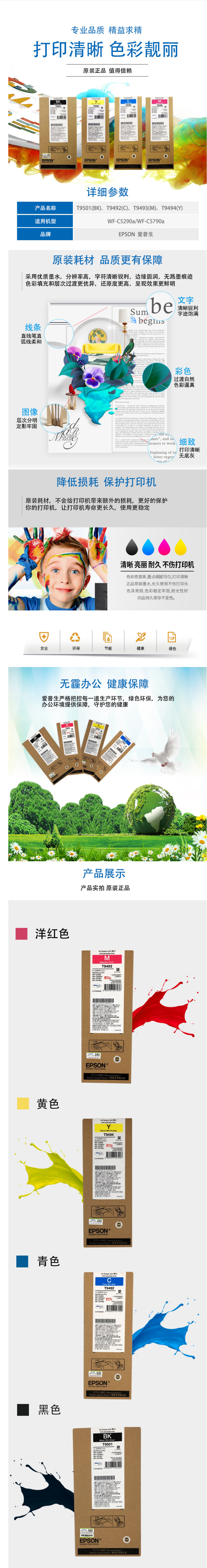 爱普生(EPSON)WF-C5290a打印机 T9492 青色约5000页 自营