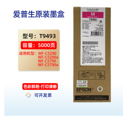 爱普生(EPSON)WF-C5290a打印机 T9493(M)红色约5000页 自营