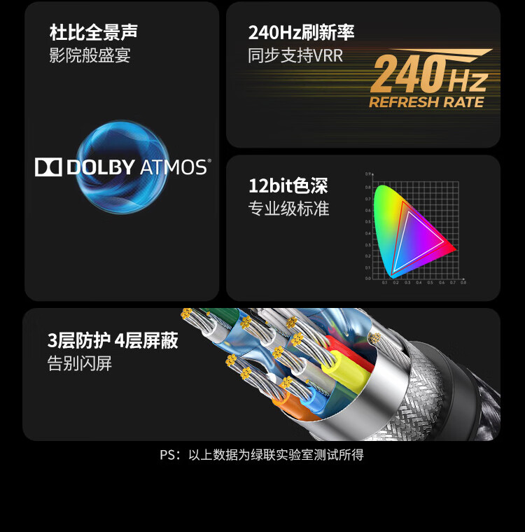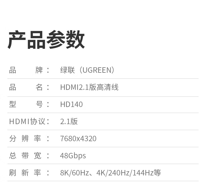 绿联HDMI线数字高清线电视投影视频连接线 1.5 米 自营