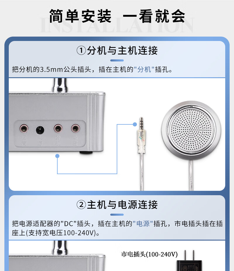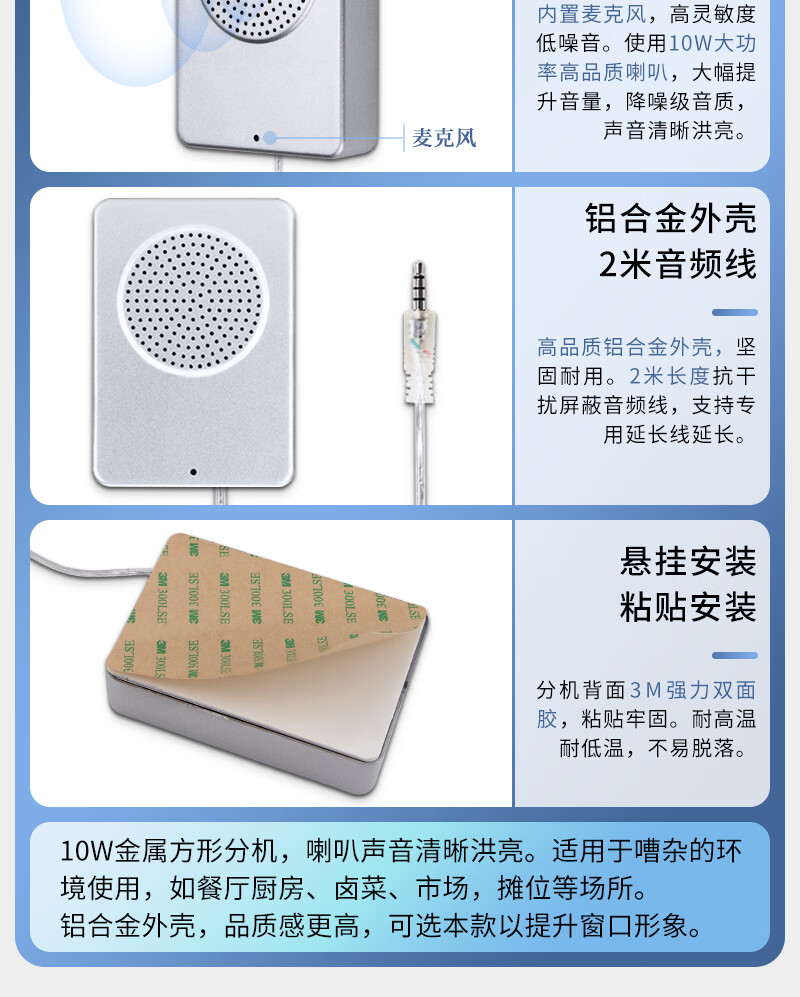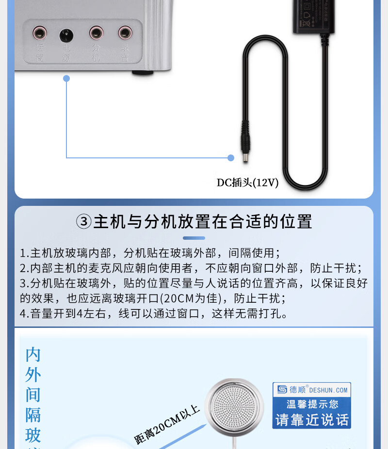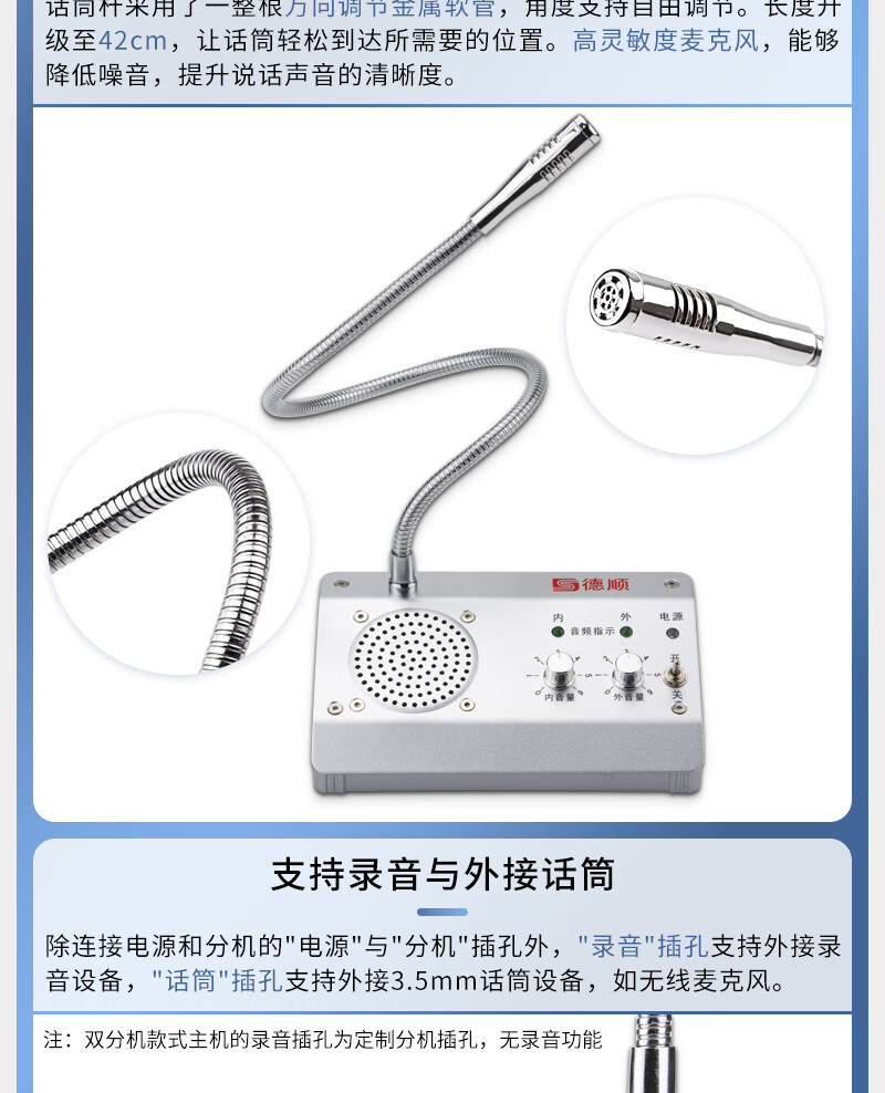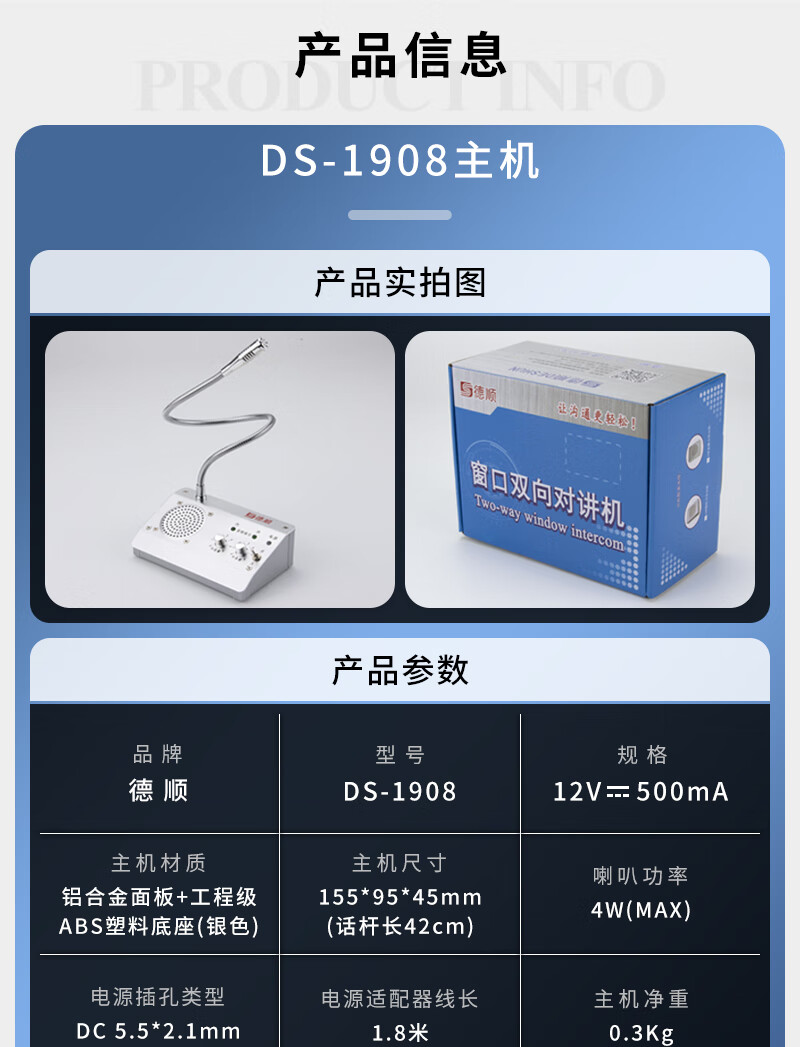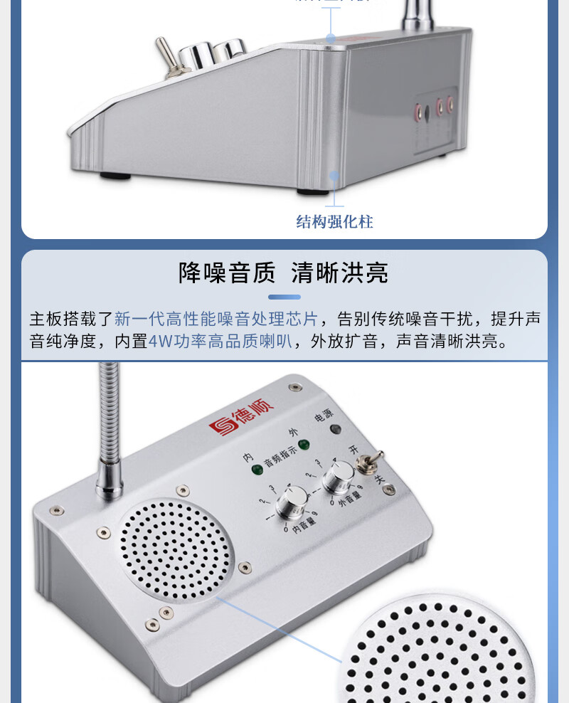 德顺(DESHUN)DS-1308 窗口双向对讲机大功率喇叭 窗口专用对讲器扩音器麦克风 自营