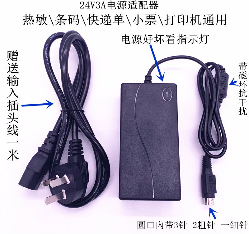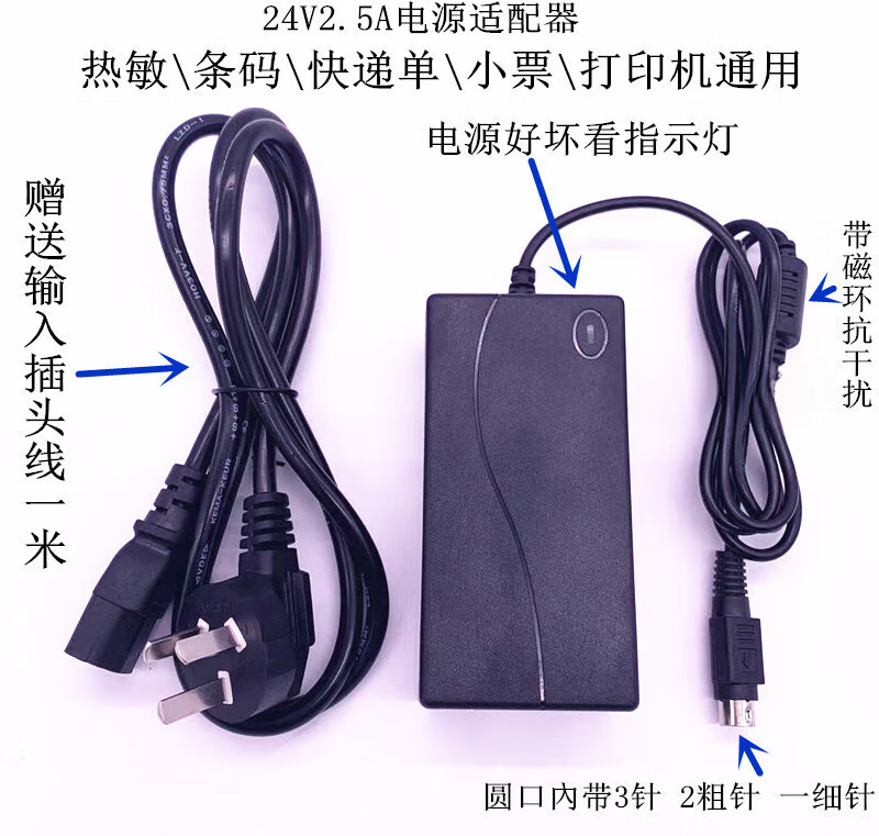 得实条码打印机电源适配器24V2A2.5A圆口三针3针 自营