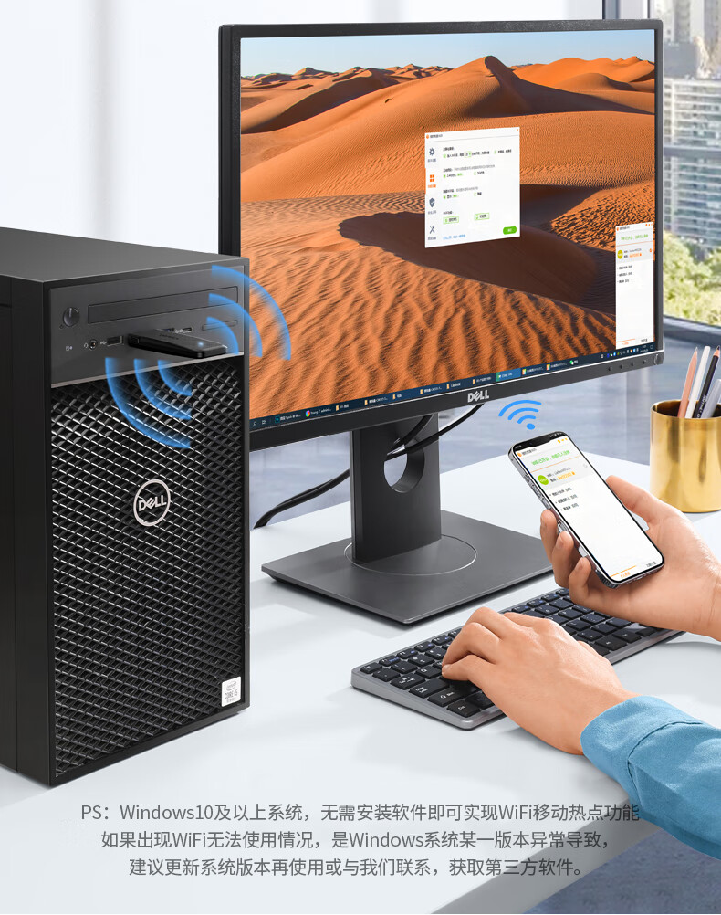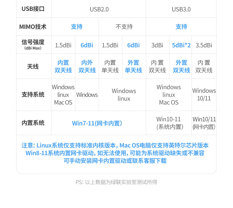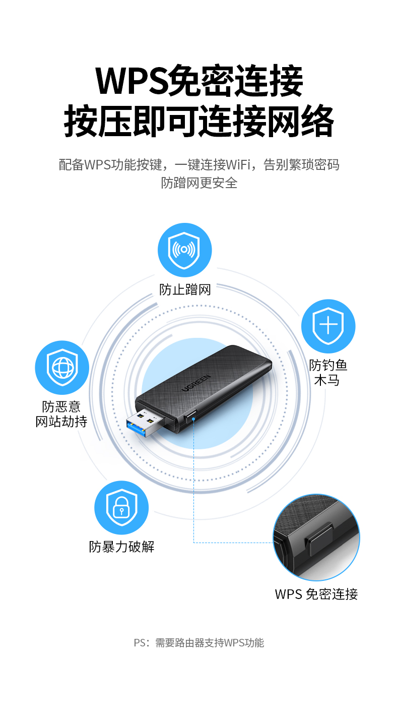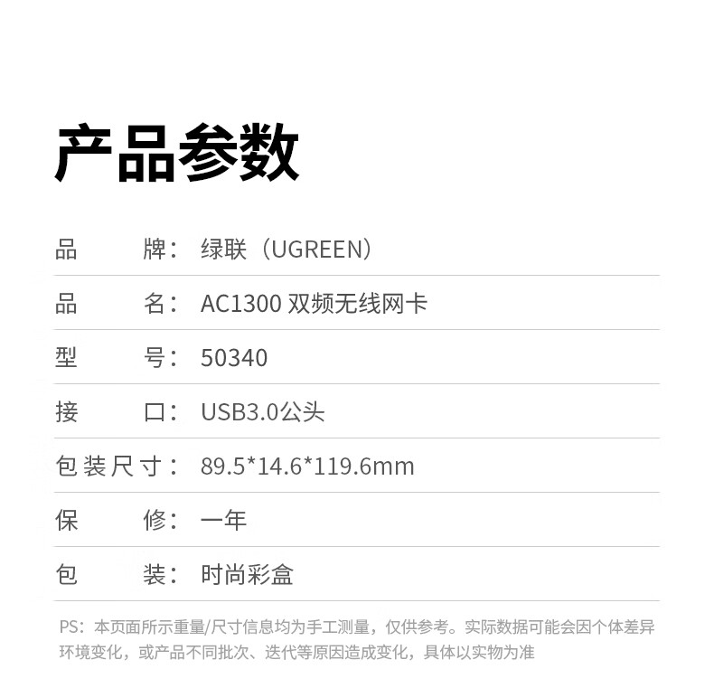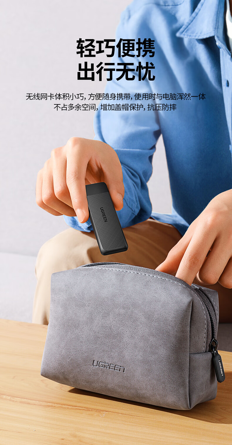 绿联 USB无线网卡免驱动 台式电脑WiFi接收器 AC1300M双频5G千兆高速网卡 自营