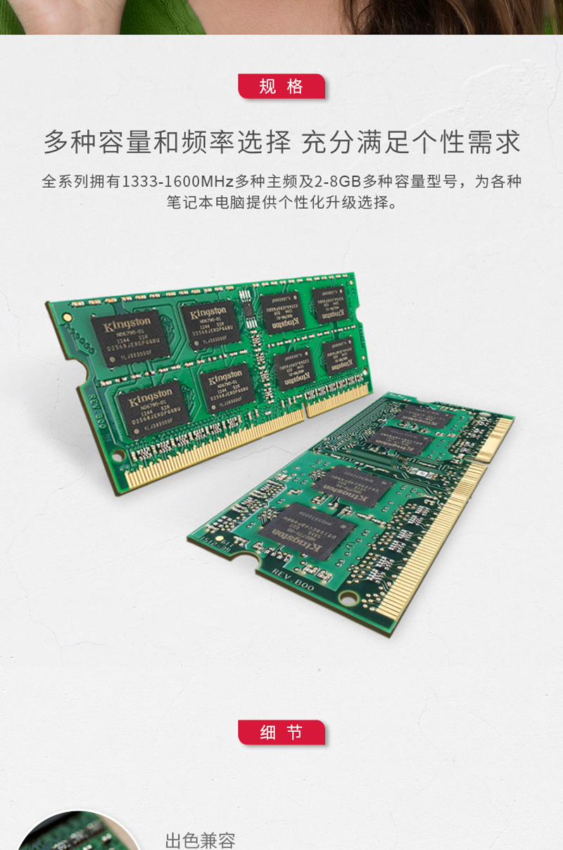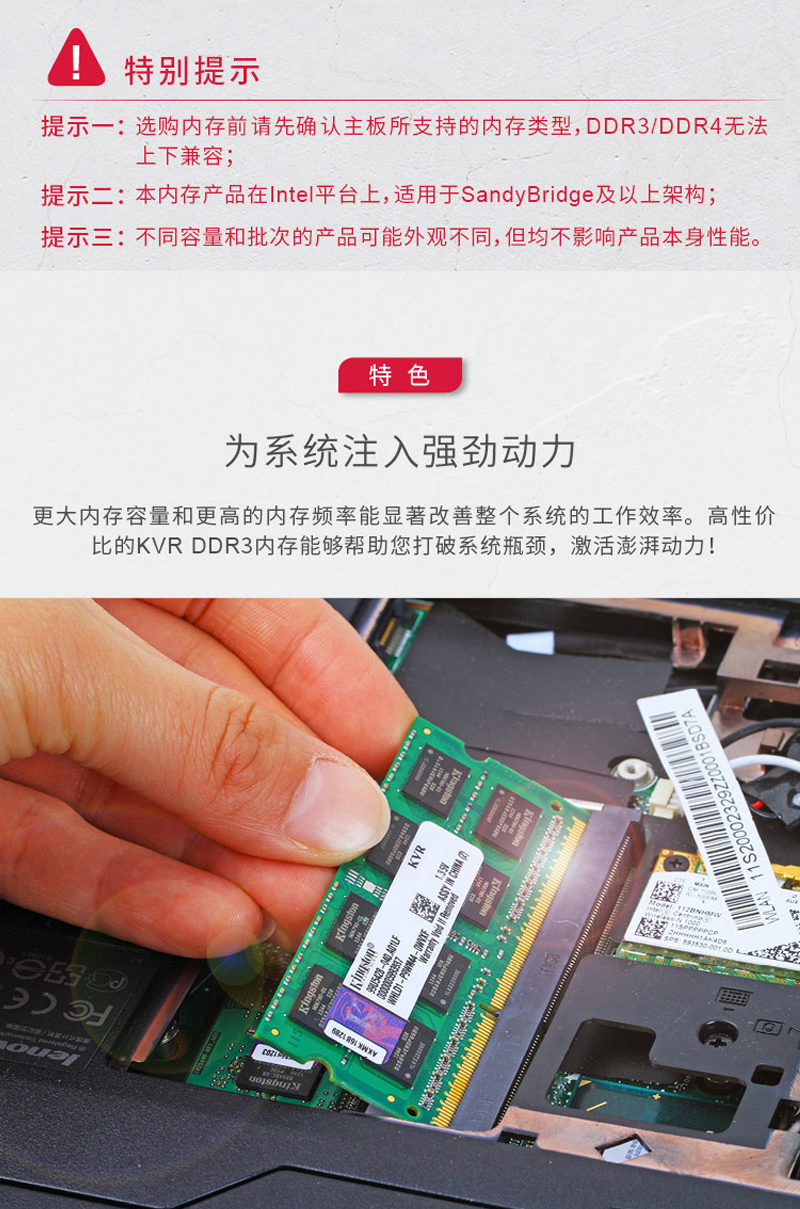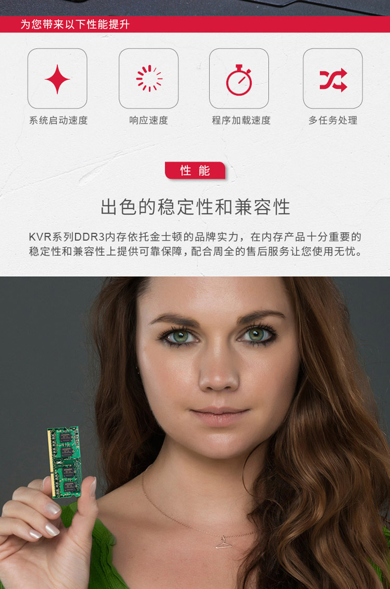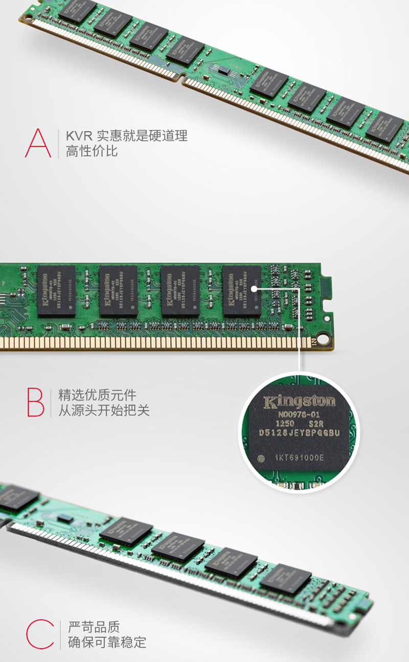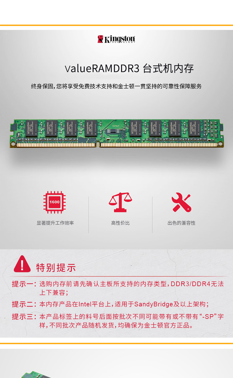 金士顿(Kingston)内存条DDR3 PC3 单条4G 自营