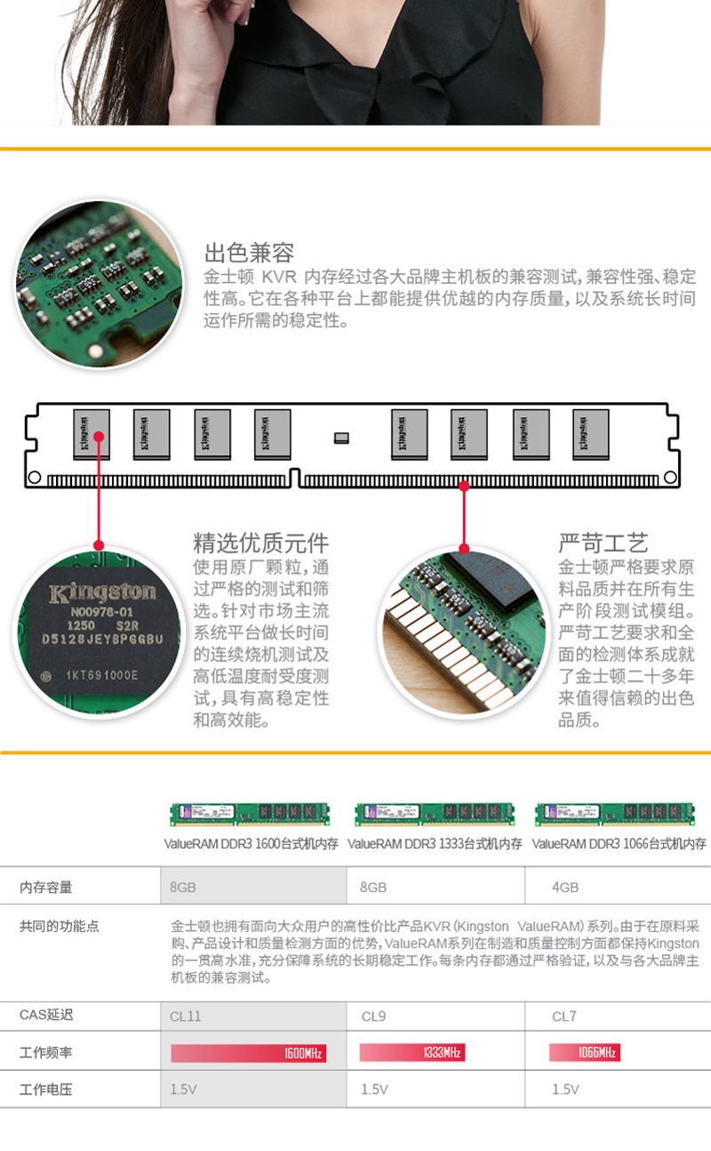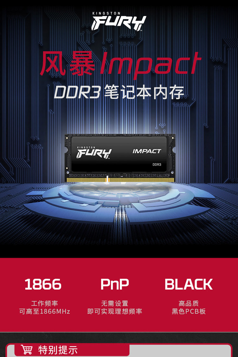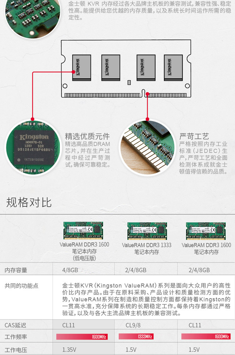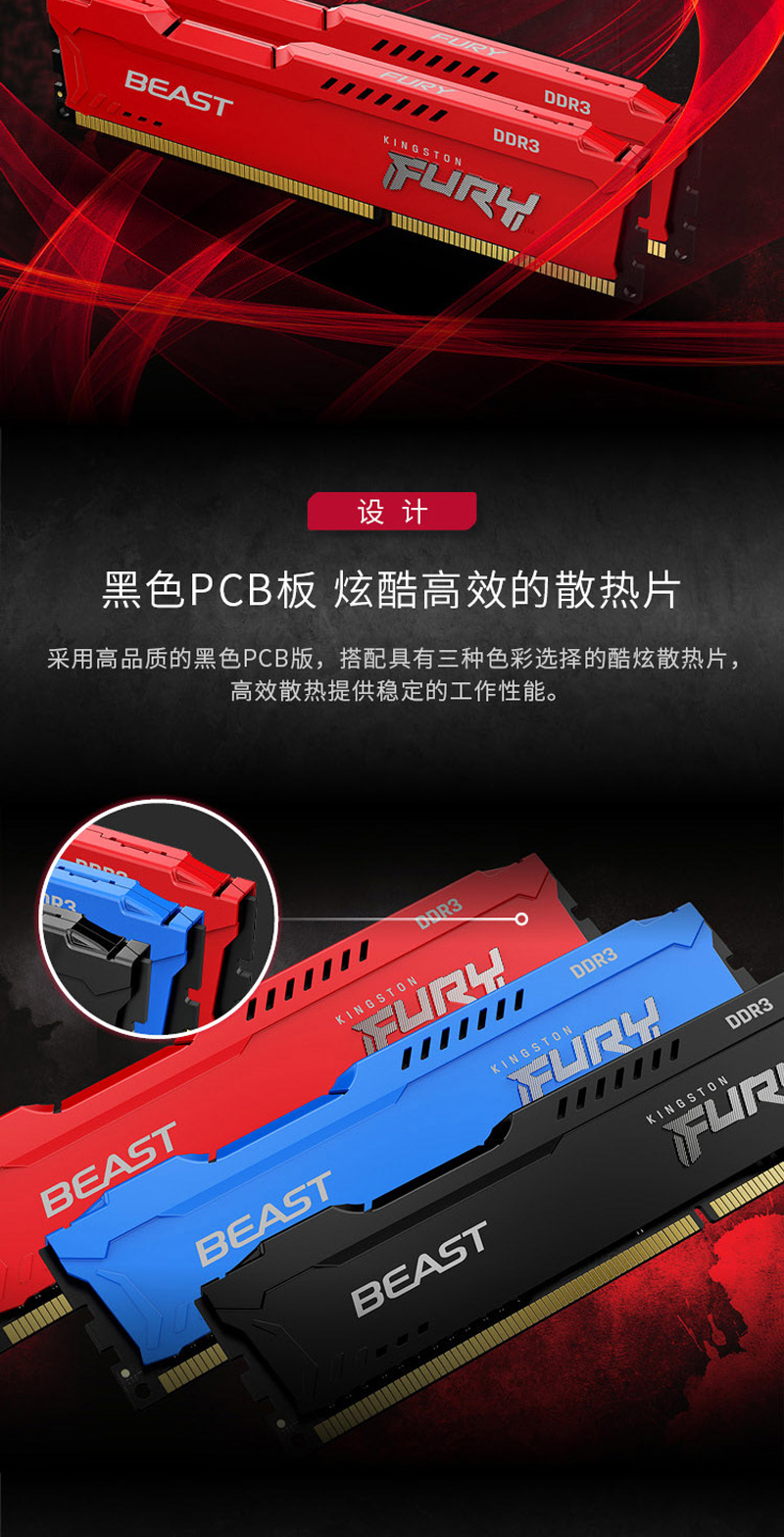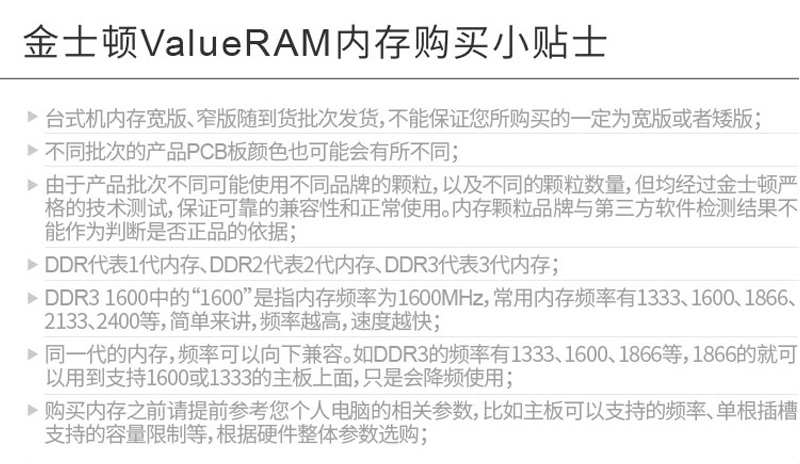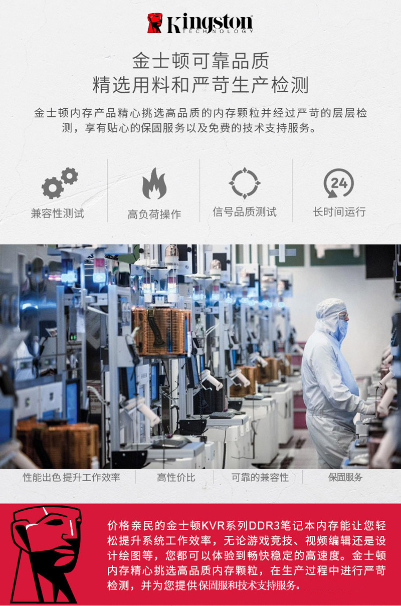 金士顿(Kingston)内存条DDR3 PC3 单条4G 自营