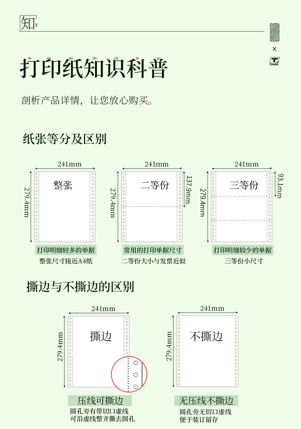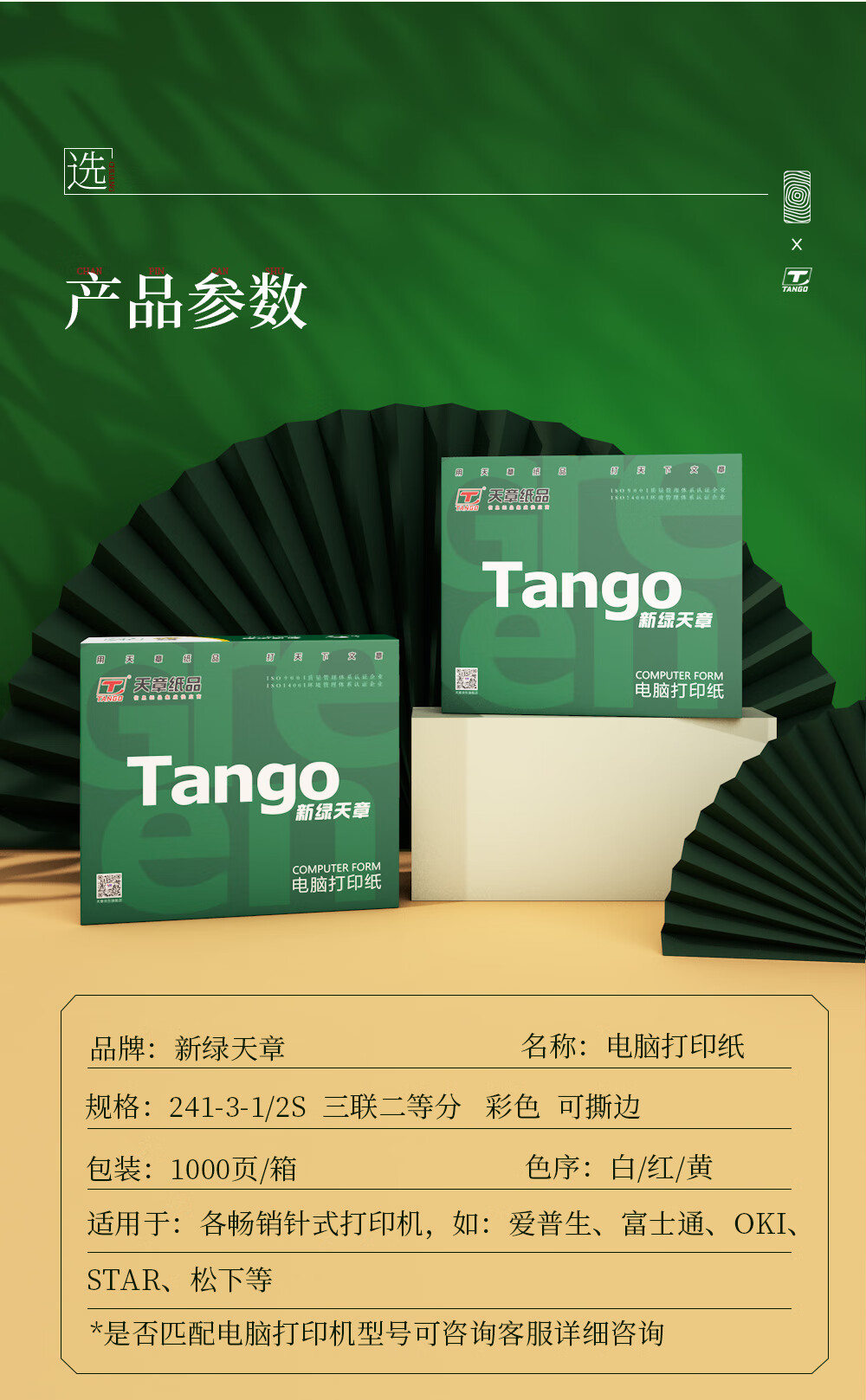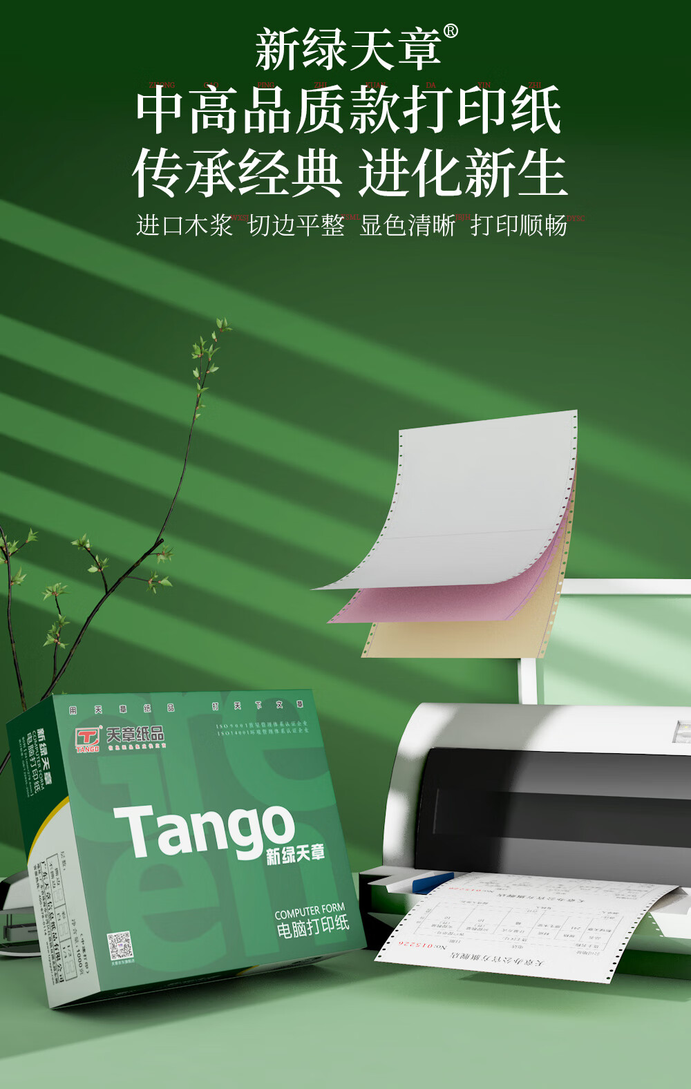 新绿天章(TANGO) 针式打印纸三联/二等分/1200页/撕边 自营