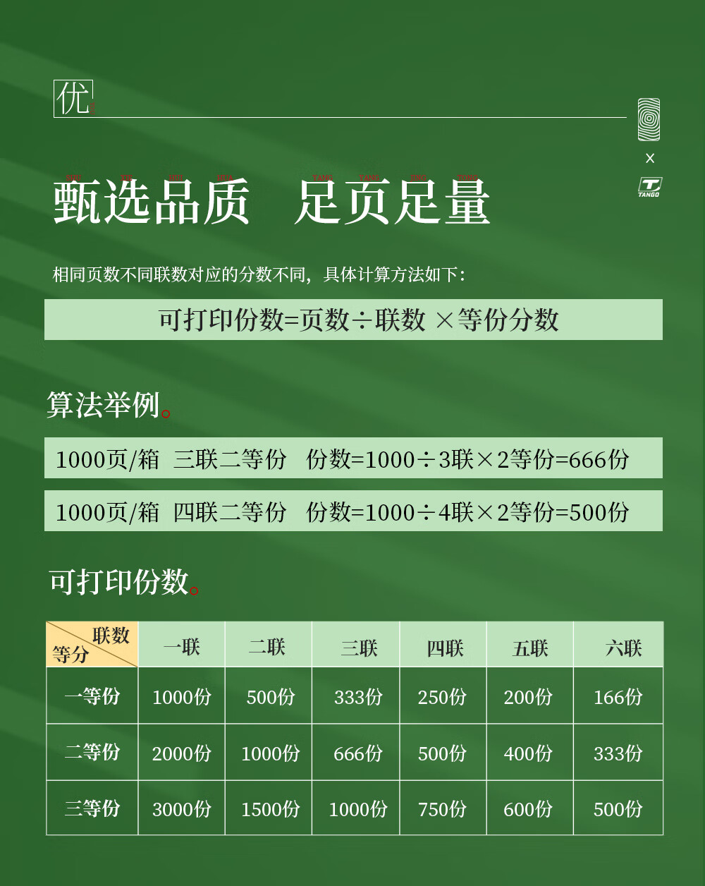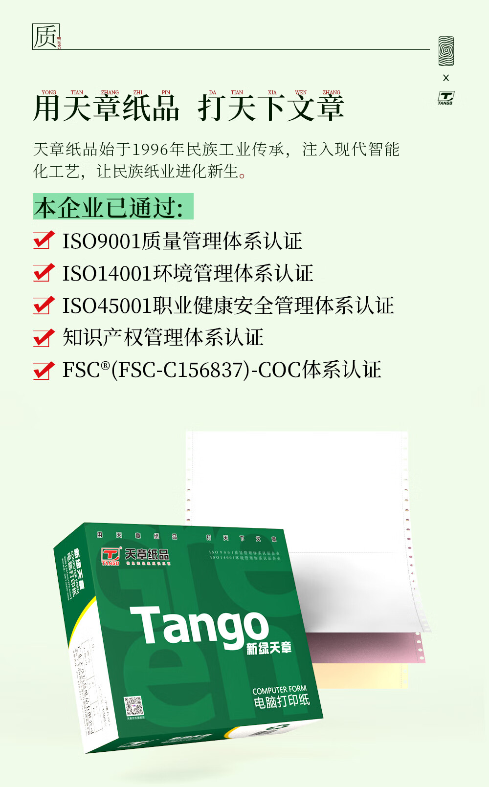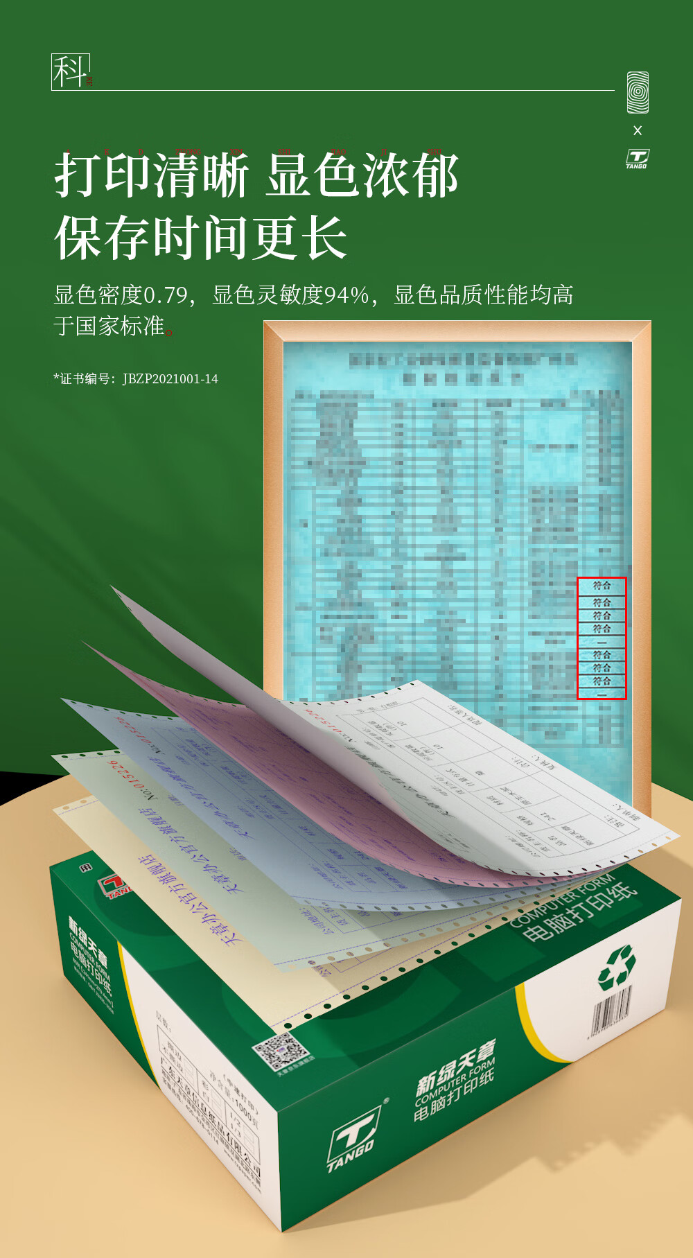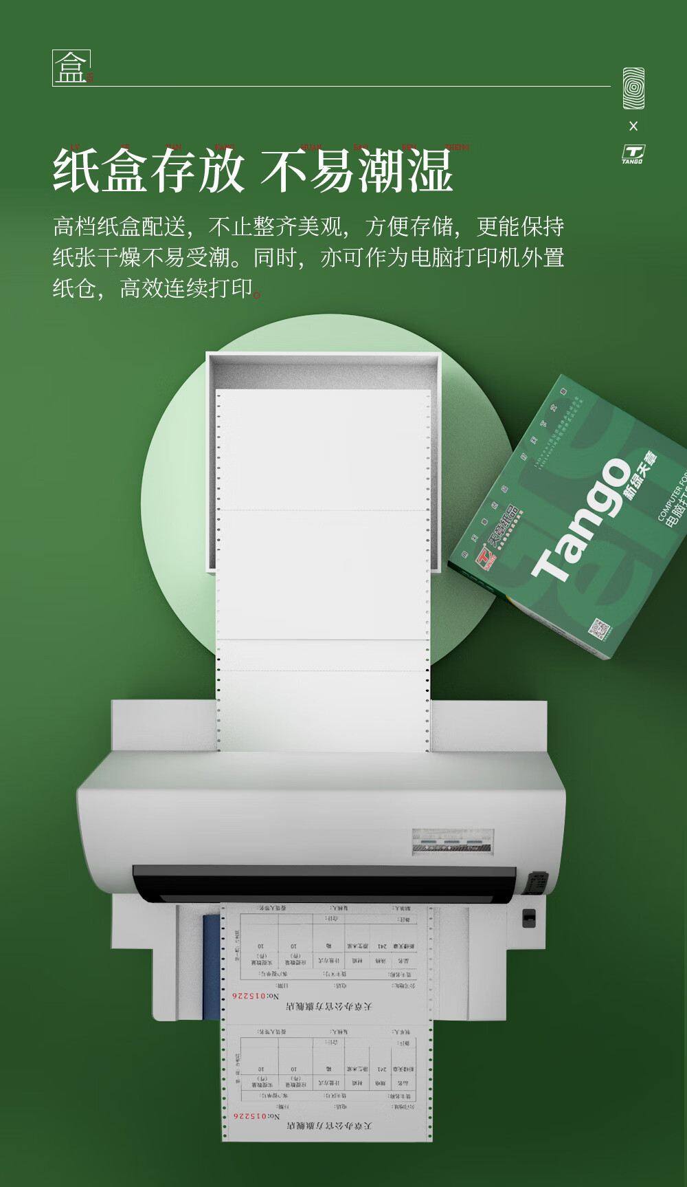 新绿天章(TANGO) 针式打印纸三联/二等分/1200页/撕边 自营