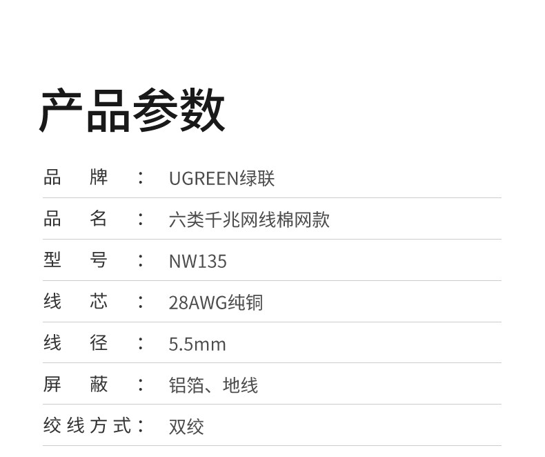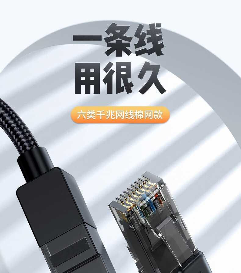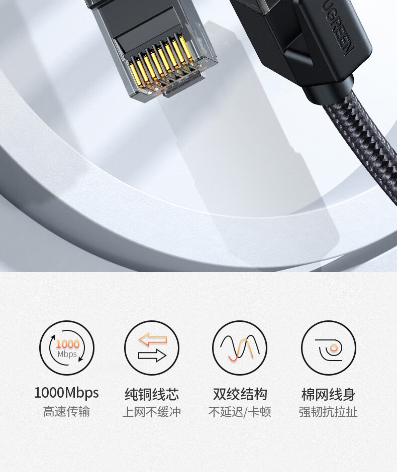 绿联CAT6A类纯铜网络跳线 千兆成品网络连接线 5米 自营