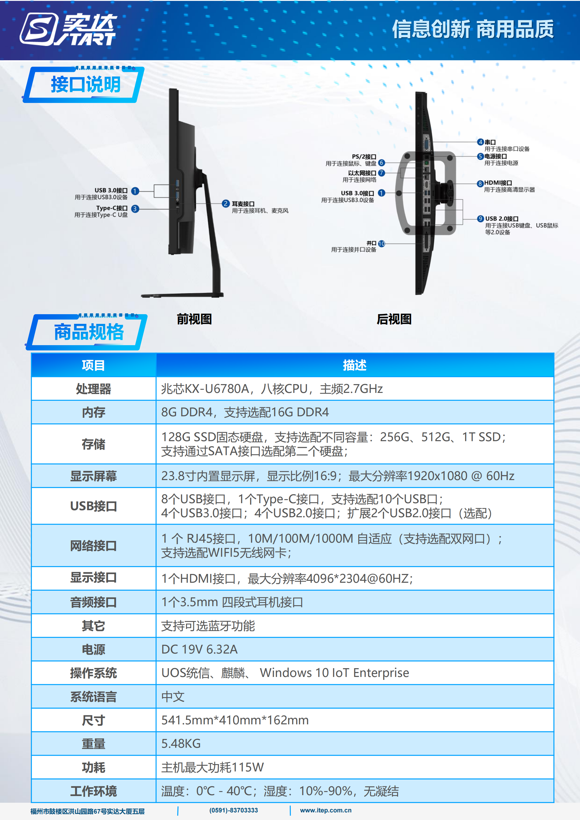 主机与显示器一体化设计,线条流畅,外观简约而不失时尚感,轻松融入各种办公环境。