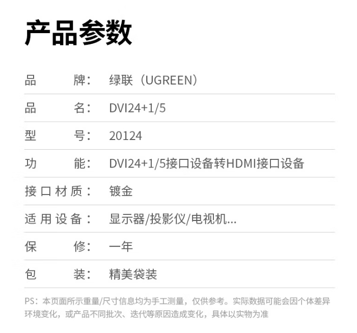 绿联DVI转HDMI转接头 DVI24+1/5