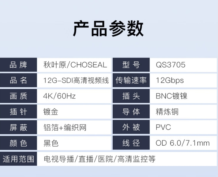 秋叶原 12G-SDI视频线 QS3705 5M